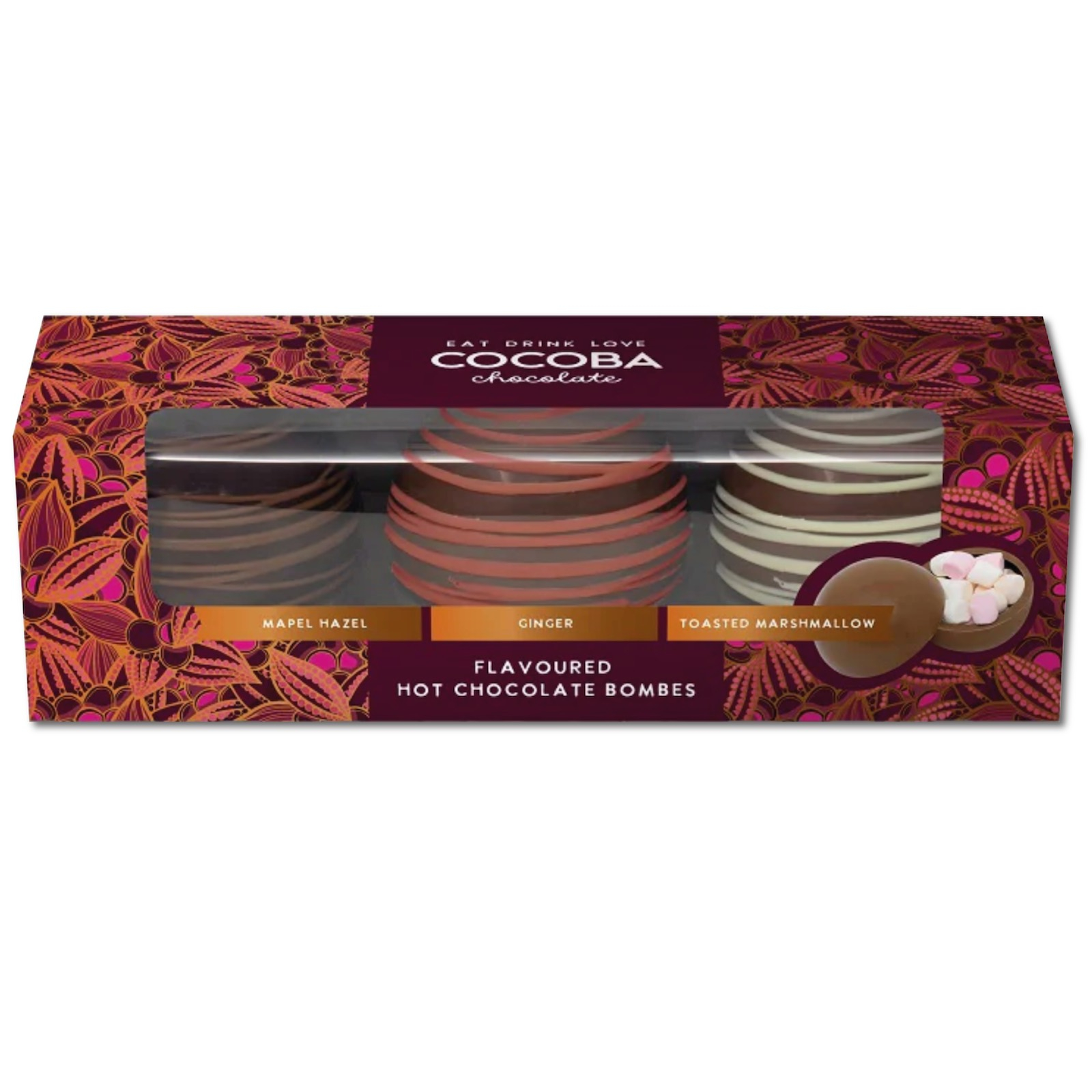 Aceste sfere de ciocolată cu lapte și bezele vin într-un trio de arome reconfortante: sirop de arțar și alune de pădure, ghimbir și bezele americane la foc de tabără. Aromele iernii la tine acasă.